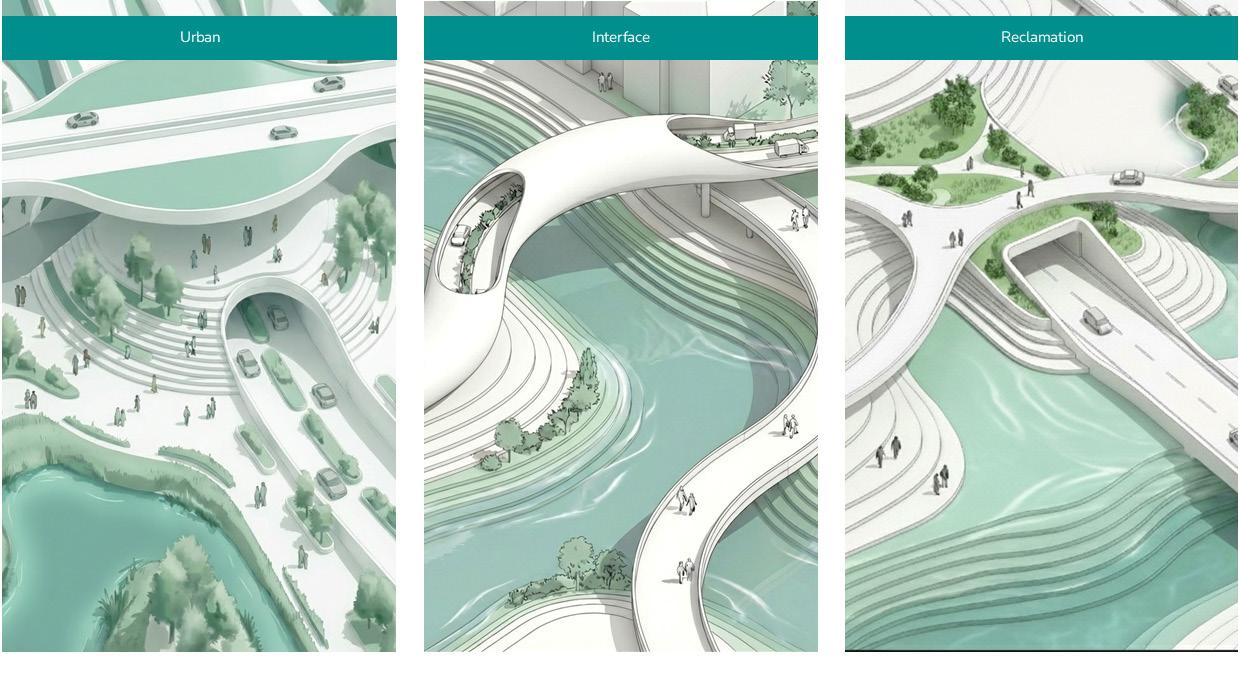 The interface design demonstrates how ecological and urban systems can be integrated to overcome infrastructural fragmentation. Through spatial continuity, adaptive programming, and re-engagement with water, the proposal restores the city’s relationship with its edge. This approach provides a scalable and resilient model for future coastal regeneration, positioning architecture as an agent of ecological and social repair.