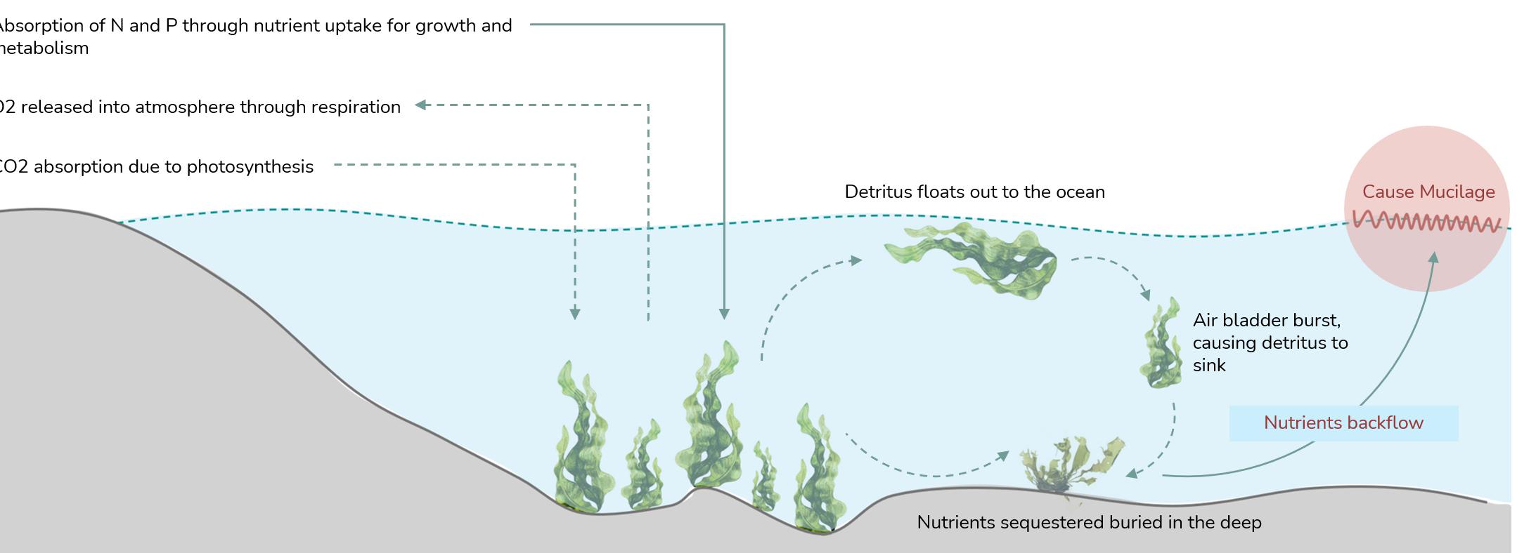 Fig. 5.8. Seaweed nutrient cycle: cultivate and stabilise absorbed nutrients. Image produced by the author.