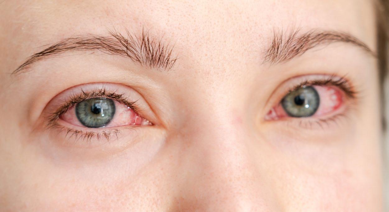 • Red and watery eyes