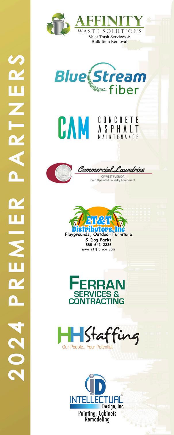 The association’s sponsorship bundle, the “Premier Partner “ is an exclusive, allinclusive, year-round sponsorship that gives individuals and/or companies an array of “prime-time” marketing/exposure opportunities that include event, education, and print advertising options.