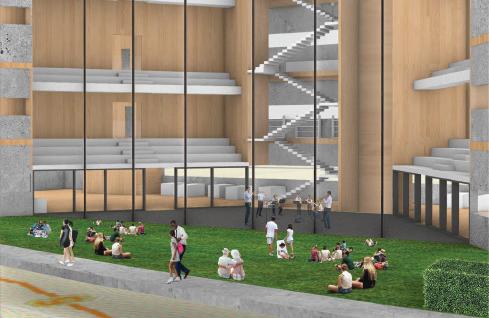 This proposal provides a permanent solution to Chinatown’s lack of a branch in the Boston Public Library system. Through site analysis, I concluded that music was the best way to entice all demographics to visit the library while exploring the cultural significance of music in Chinese culture. The library consists of a traditional library space on upper levels and a musical experience reserved for lower levels. The library addresses the changing climate of libraries, evolving away from a space dedicated to quiet study to a dynamic place of interaction in conjunction with traditional library programs.