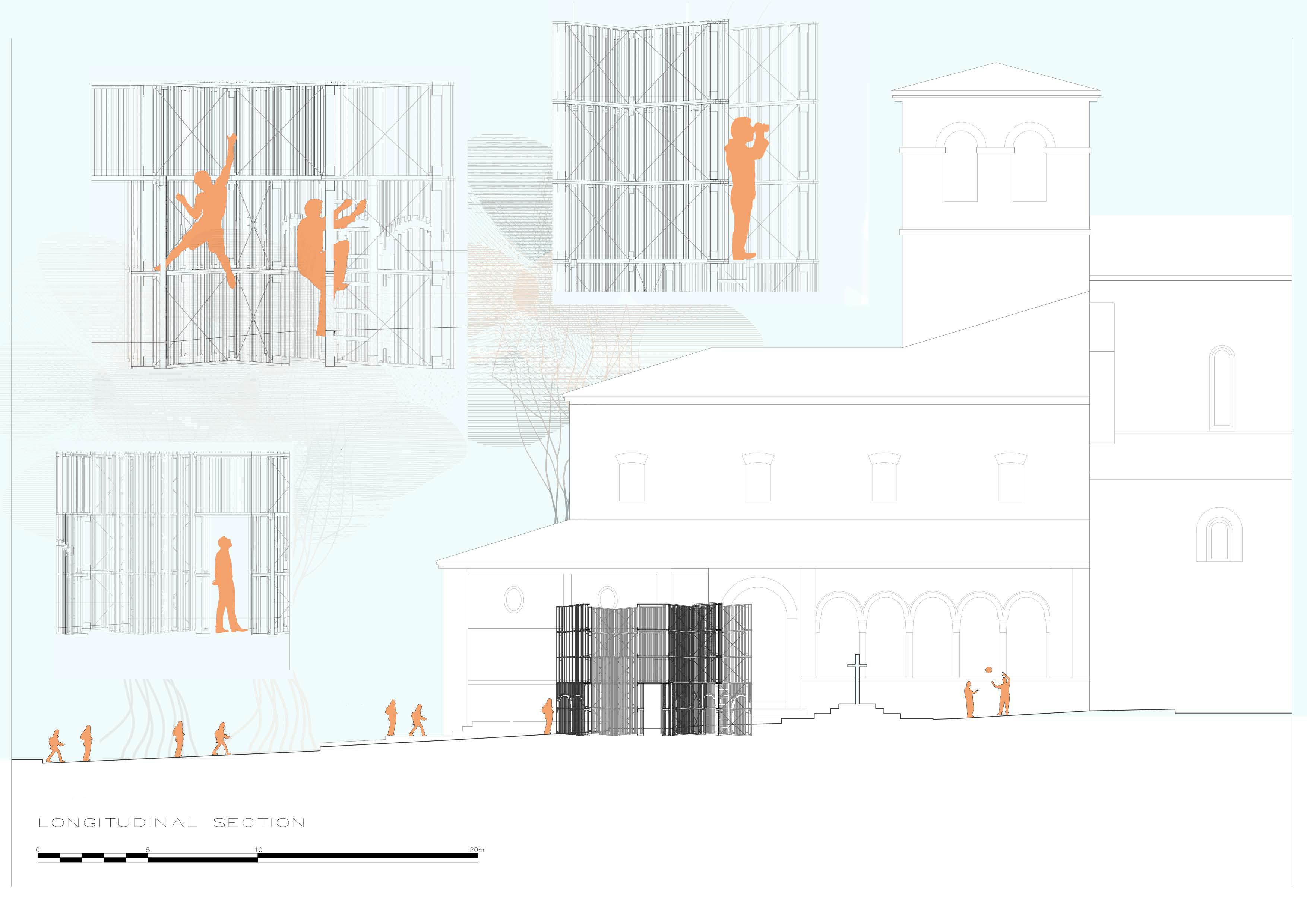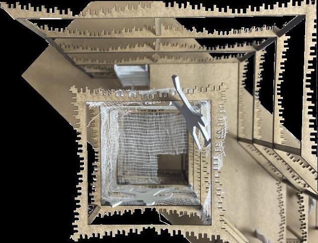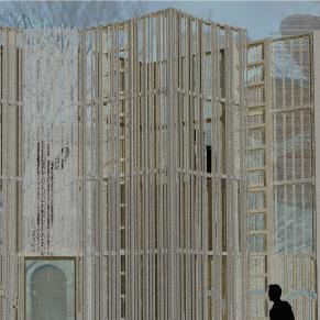 This design reimagines an existing temporary structure and transforms it to react under site specific conditions of a new location. The project titled Otravision, by Davide Marchetti with Noumena for VR experience, provided a watchtower to overcome visual barriers of its location. Experimenting with wood through the techniques of voids, layering, and geometry my collaborators and I redesigned the precedent for an inactive plaza in front of Iglesia de El Salvador with the demographic in mind.