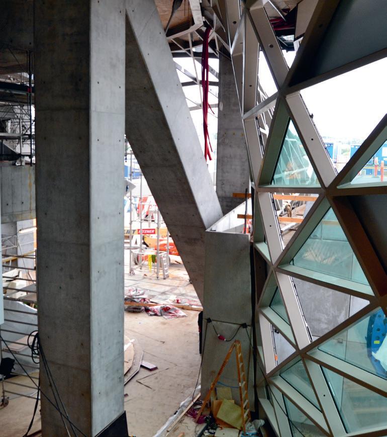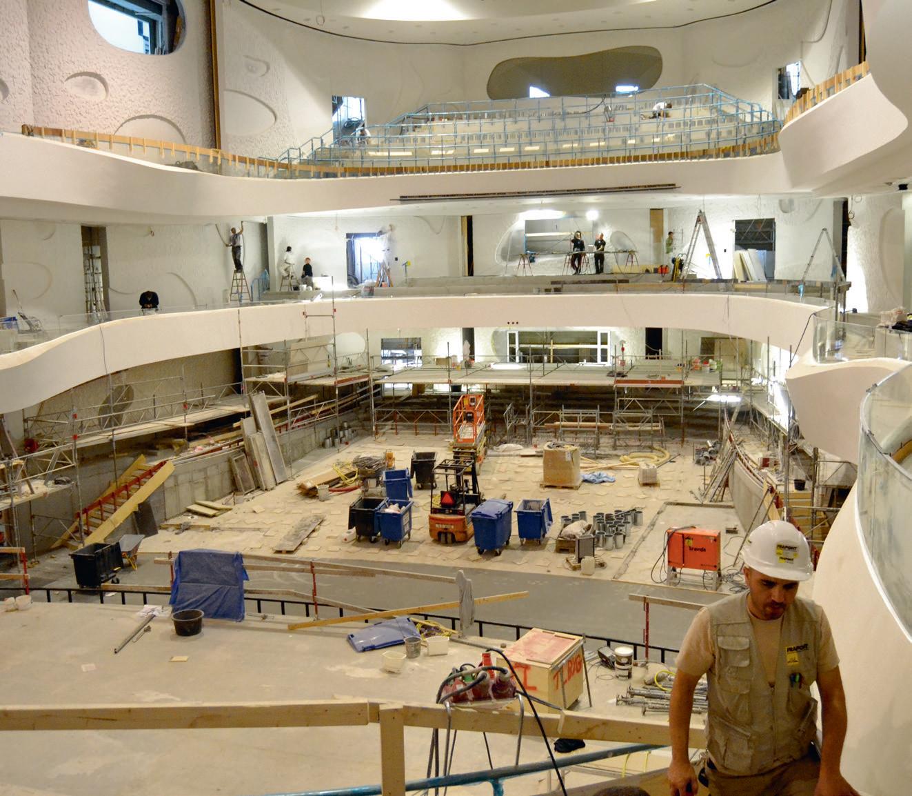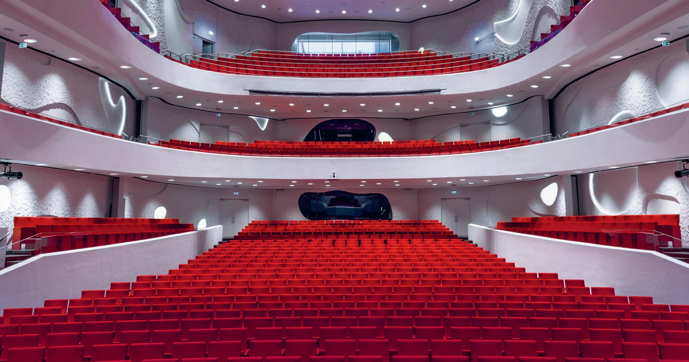 Den særlige overflade på de indre vægge i Koncertsalen er designet ved hjælp af et computerprogram, som Coop Himmelb(l)au udviklede i samarbejde med en akustik-ekspert.