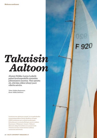 Takaisin Aaltoon Alumni Riikka-Leena Leskelä palasi koulunpenkille etsimään johtamiseen suuntaa. Yksi opeista oli, että hän olikin tehnyt juuri oikeita asioita. Teksti: Riikka Hopiavaara Kuvat: Mikko Raskinen