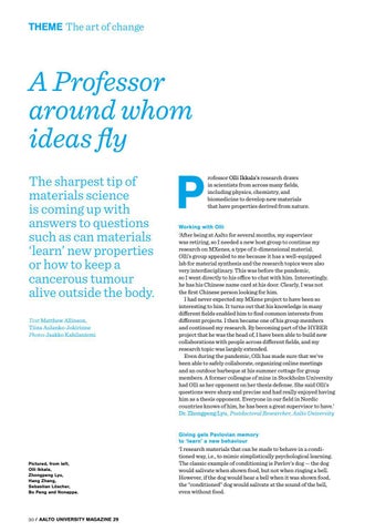 A Professor around whom ideas fly The sharpest tip of materials science is coming up with answers to questions such as can materials ‘learn’ new properties or how to keep a cancerous tumour alive outside the body. Text Matthew Allinson, Tiina Aulanko-Jokirinne Photos Jaakko Kahilaniemi
