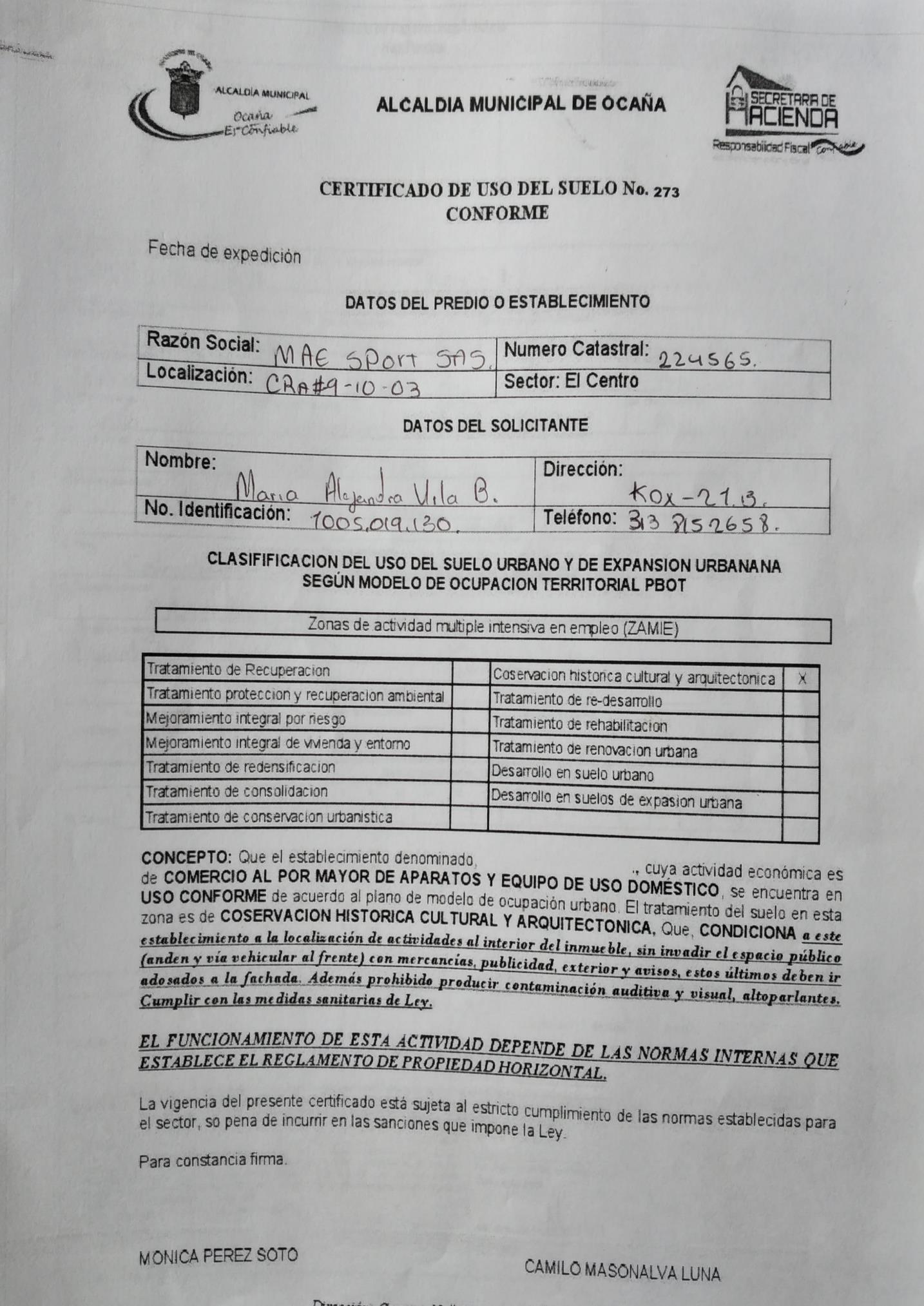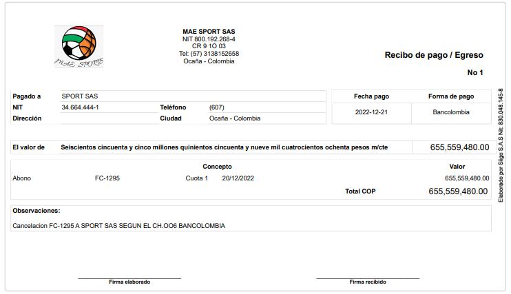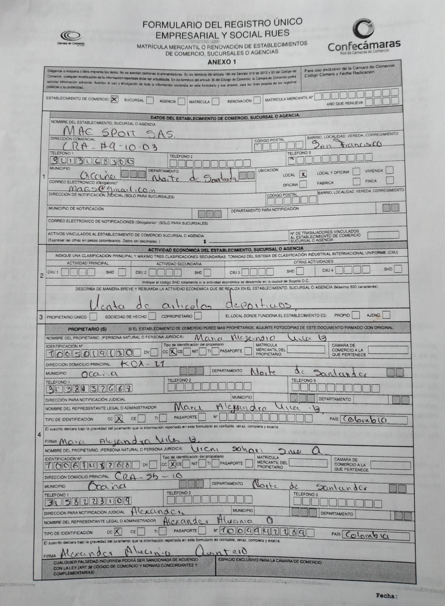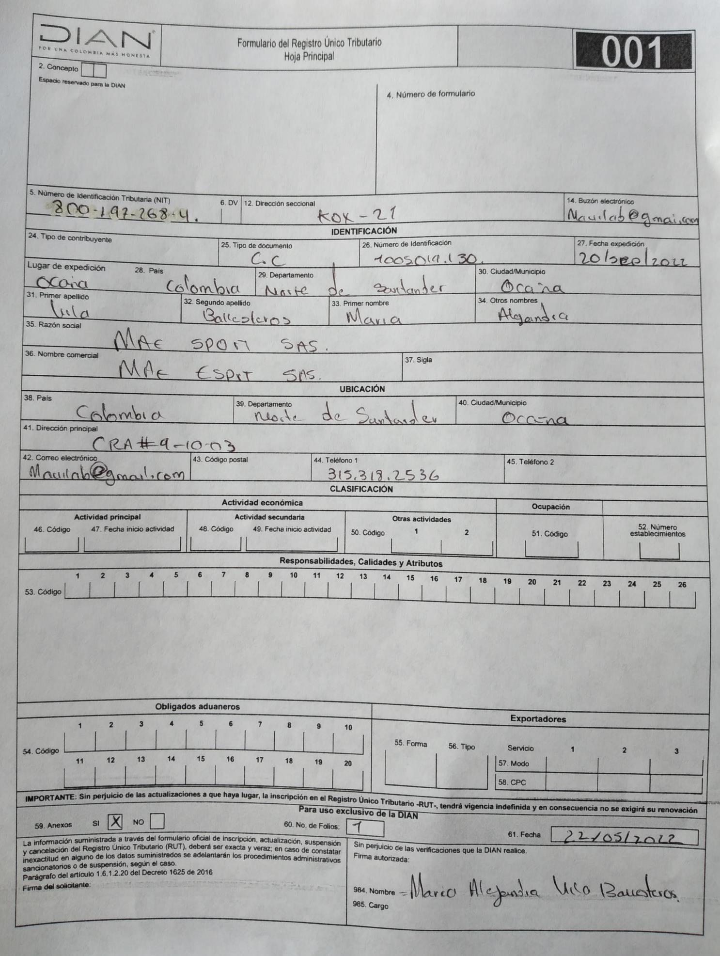que pasa MAE SPORT SAS FIRMA Y SELLO