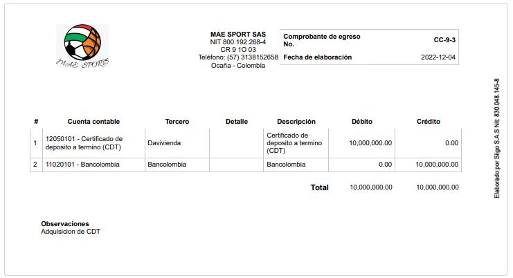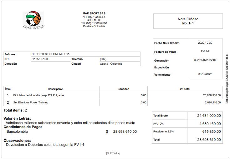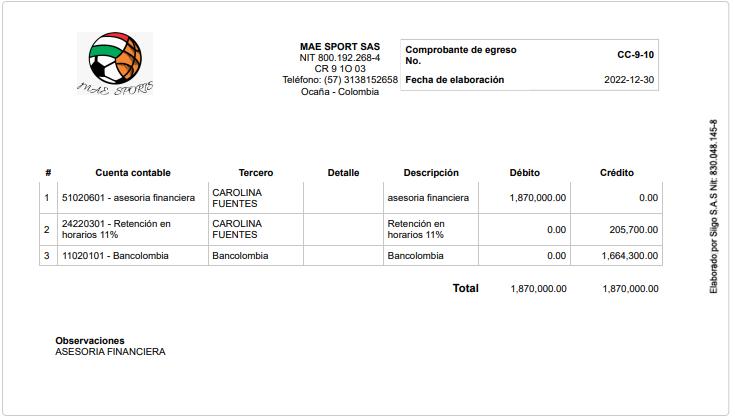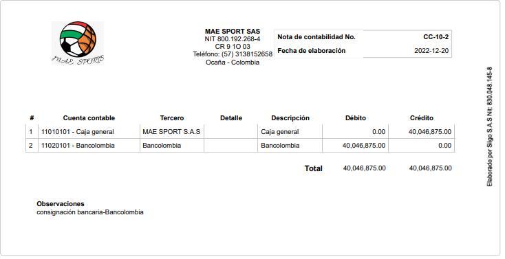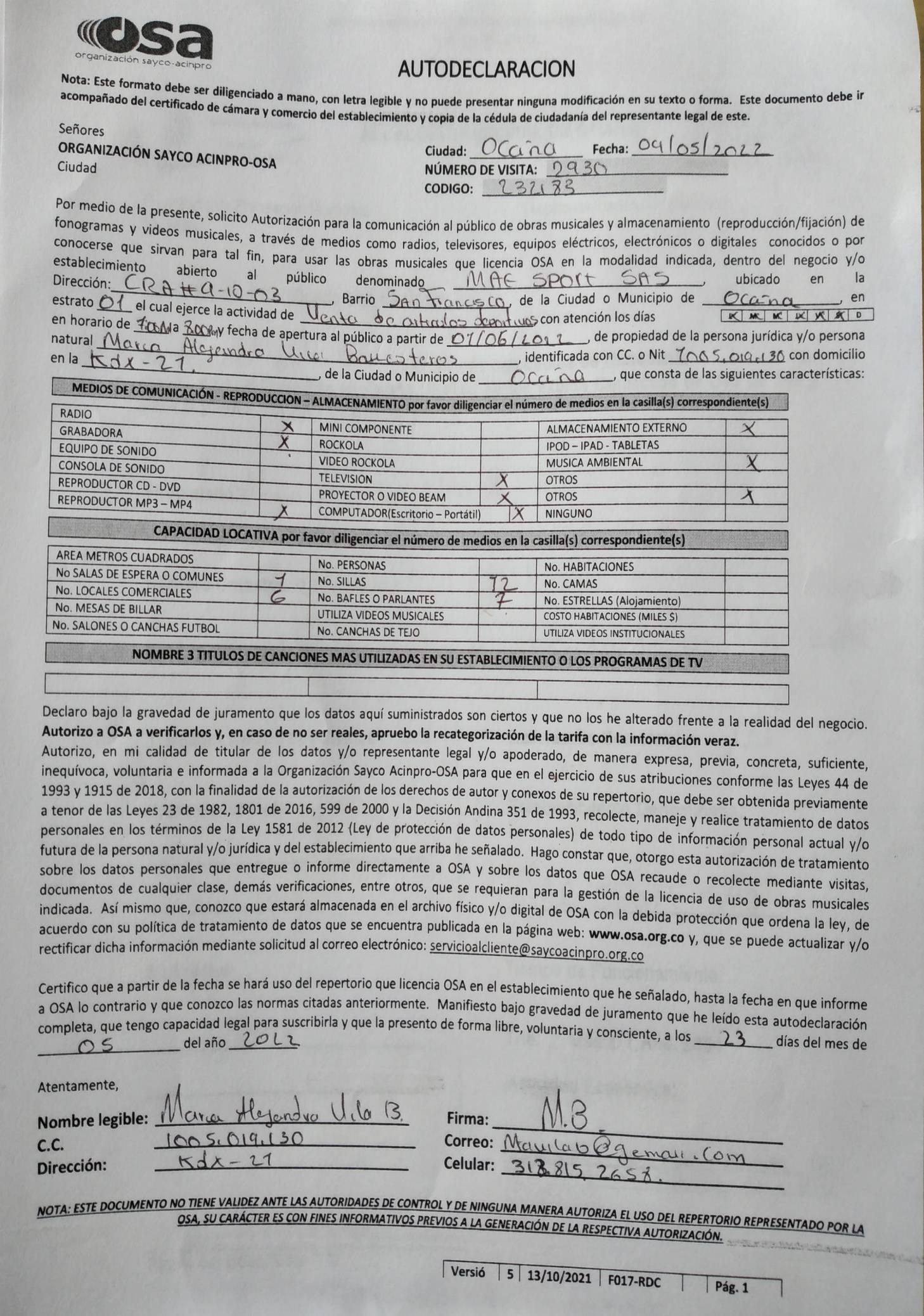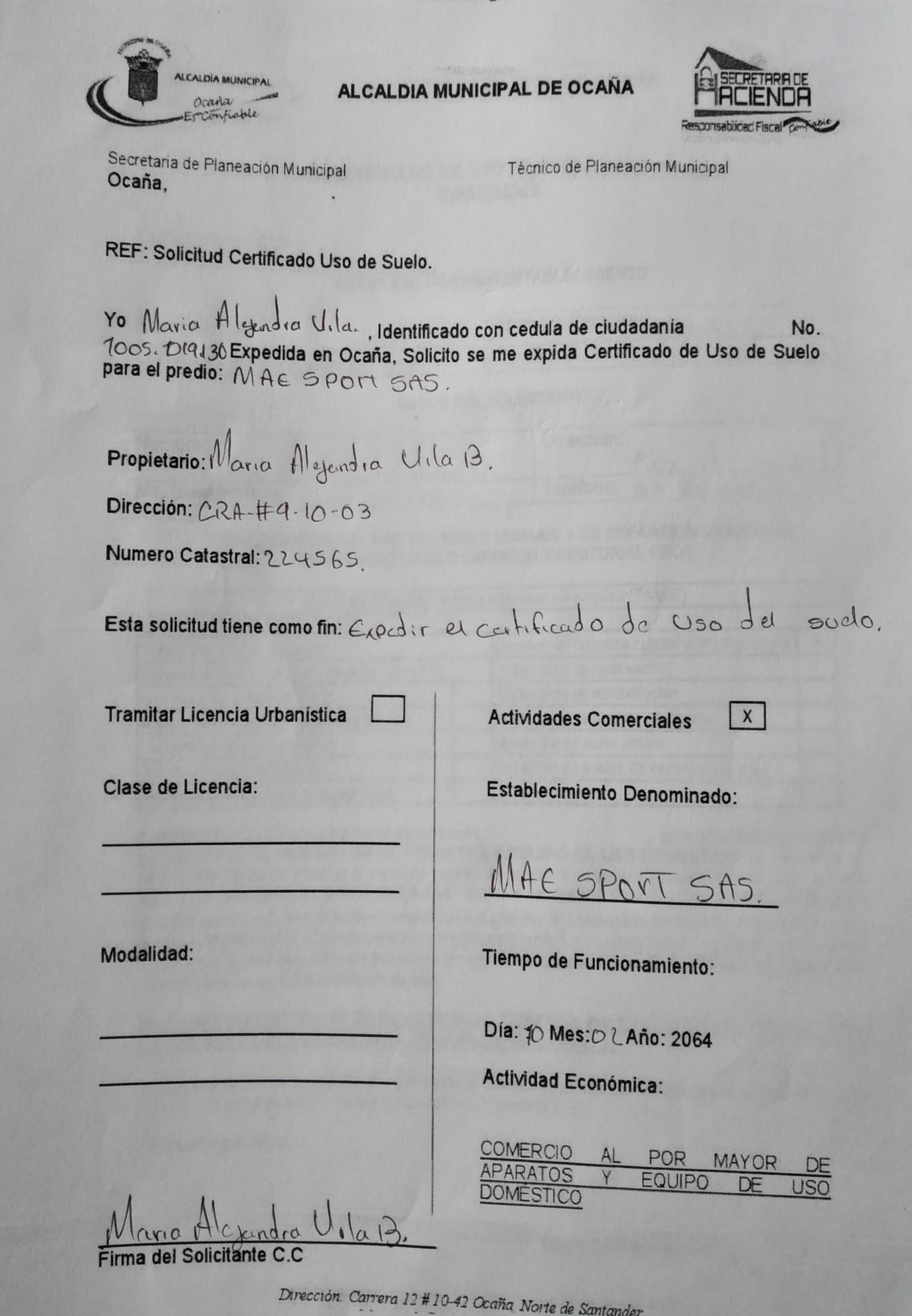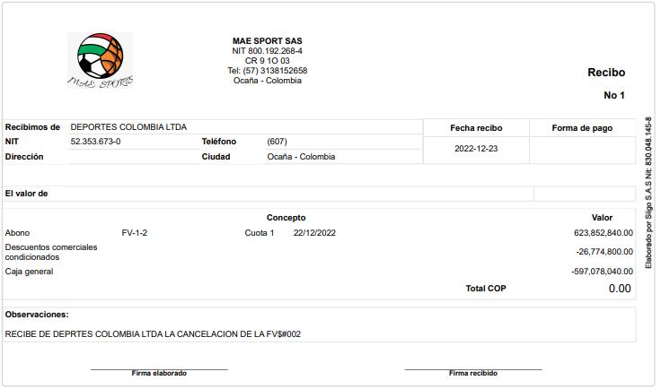 que pasa MAE SPORT SAS FIRMA Y SELLO