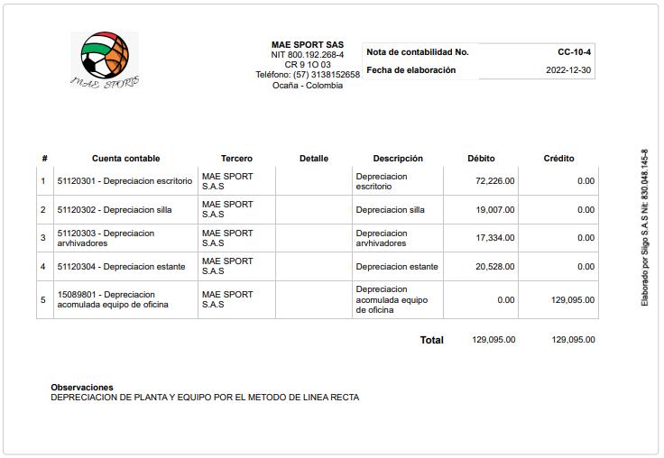 DICIEMBRE 30 La empresa efectúa la depreciación de la propiedad planta y equipo por el METODO DE LINEA RECTA desde el 15 de noviembre a 31 de diciembre.