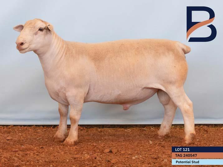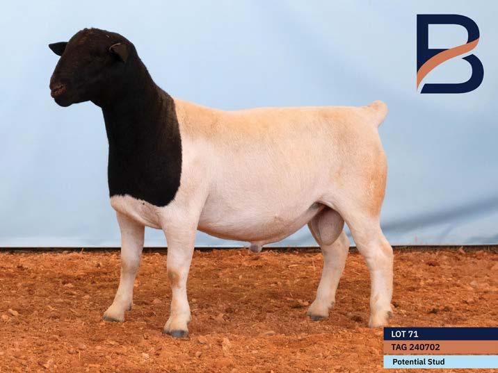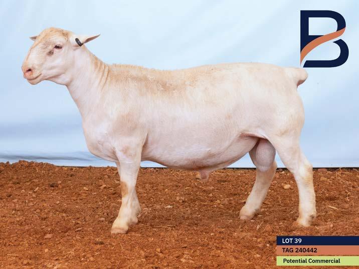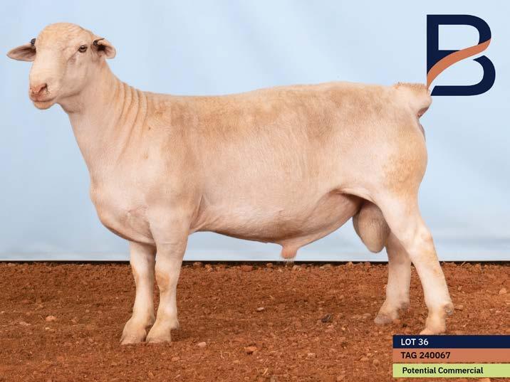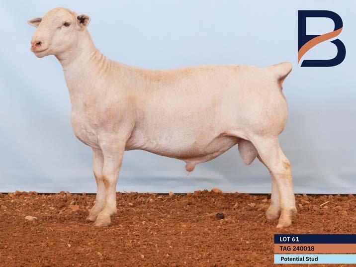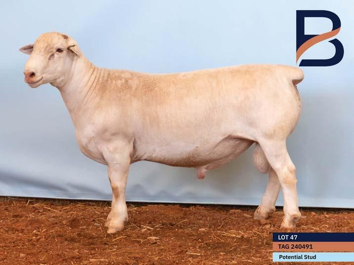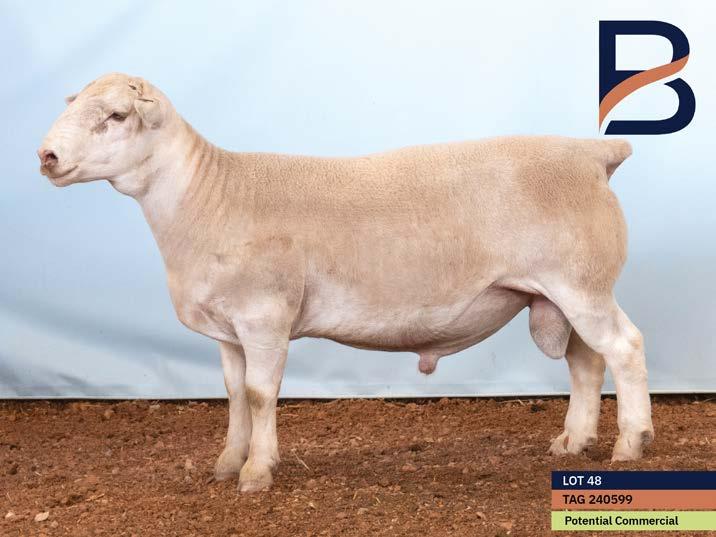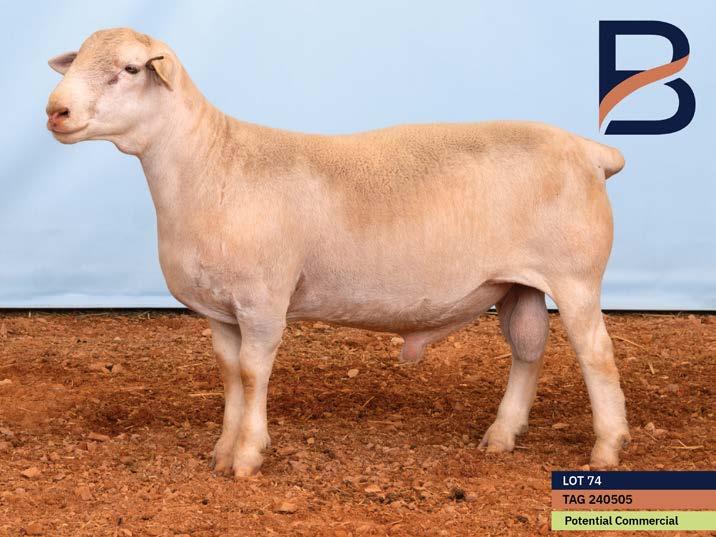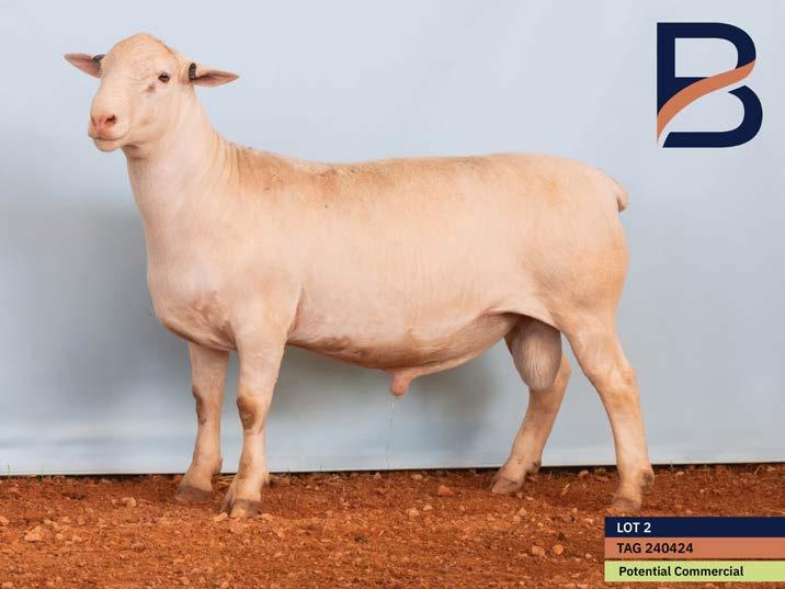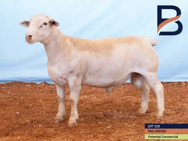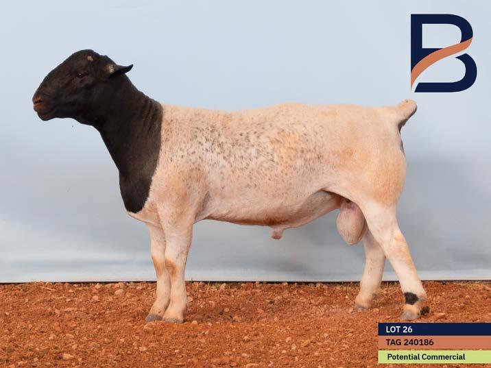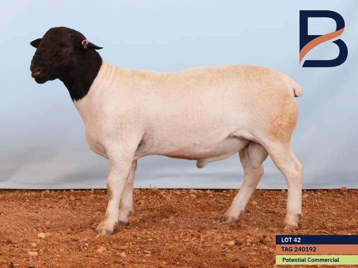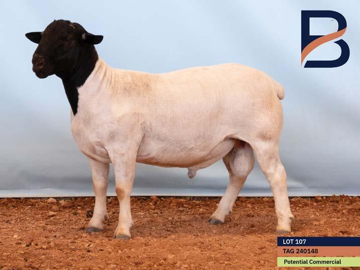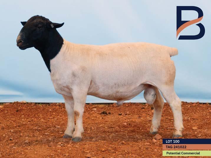This twin SUPERBREEDER son recorded in the top 10% for MCP and post weaning EMD. This ram has good muscling with a deep twist.
