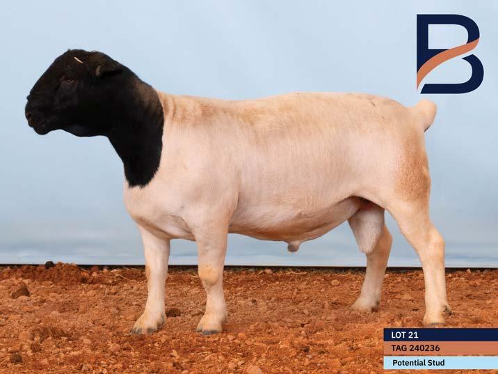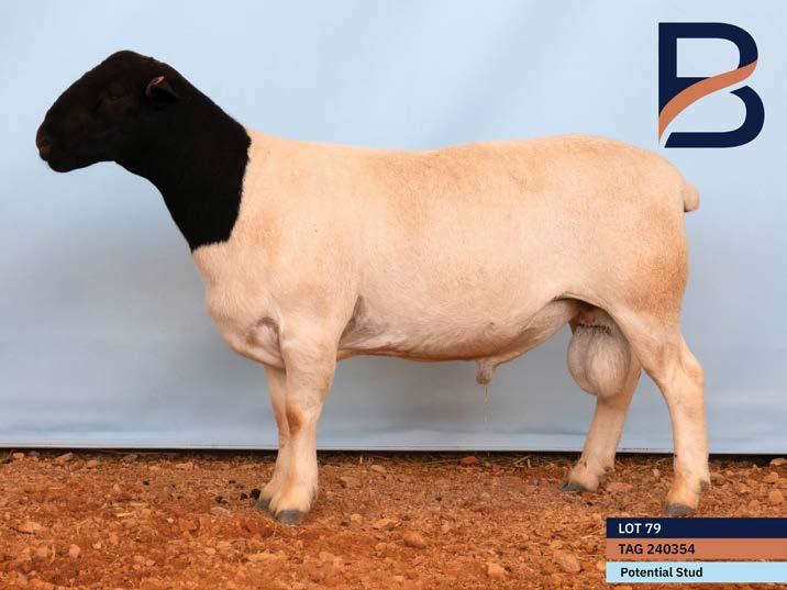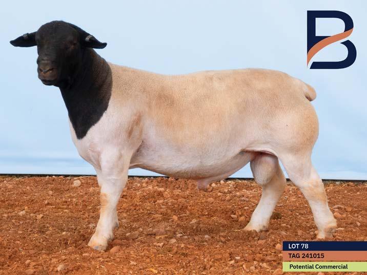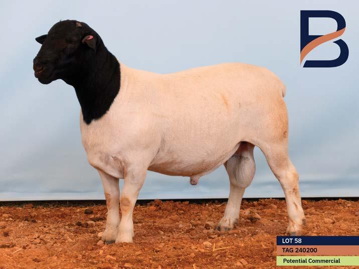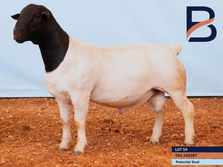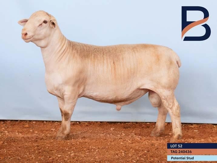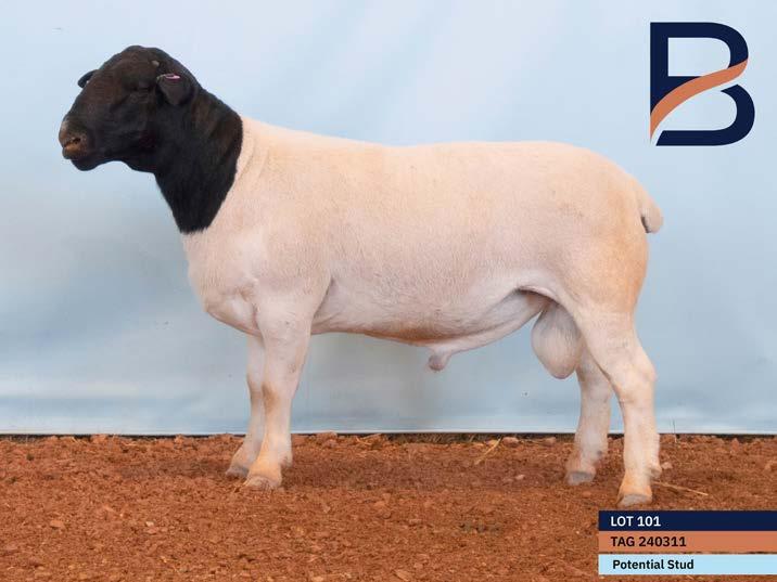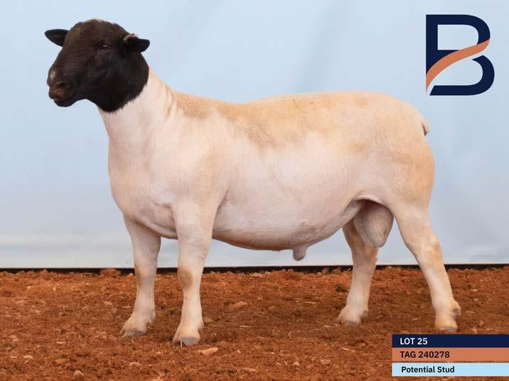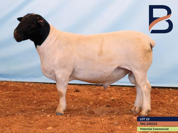 This twin is a very structurally correct ram with both length and balance to improve your carcass and yield . He would be an asset to any stud.