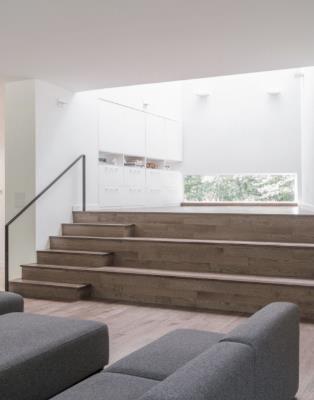 Designed to encourage outdoor living in snowy winters and rainy days, the theatre-like covered deck embraces nature and instills the value that connecting with community can happen in any weather. A sliding wall opens into the playful interior where a hanging net over the living room, monkey bars along the children’s hall, and a light installation in the form of the Orion constellation are but a few of the playful storied elements that capture the ethos of the design–We are what we create.