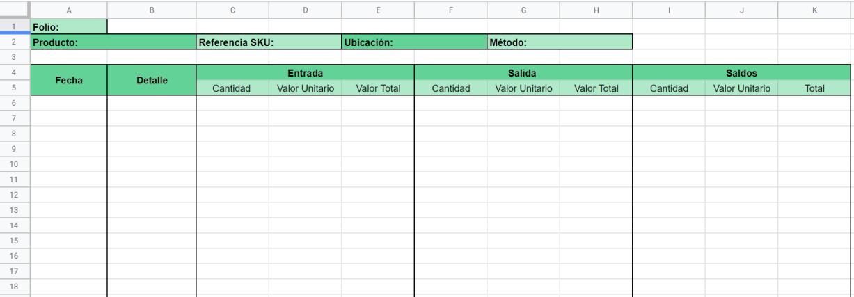 para desarrollar cualquier kardex es esencial incluir una serie de datos para un correcto seguimiento de las entradas y salidas de productos. Por lo cual este documento debe contener estos detalles: