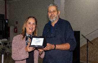 Ao final da reunião, o vice-presidente da AAPVR, José Lúcio da Silva, o J. Lúcio, entregou a Neuza Jordão uma placa de congratulações e de parabéns pelo trabalho à frente do COMUDA.