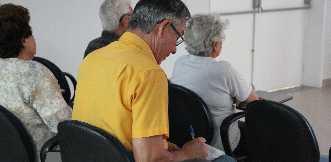 Alunos na aula de Educação Financeira do programa E-Idoso.