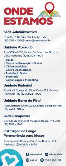 O Grupo AAPVR, junto com o Conselho Municipal de Defesa dos Direitos da Pessoa Idosa de Volta Redonda (CMDDPI/VR), Fundo Municipal dos Direitos da Pessoa Idosa de Volta Redonda (FMDI/VR), Prefeitura Municipal de Volta Redonda e de empresas que valorizam a “Geração Prateada”, acredita que a qualidade de vida e manutenção da boa saúde da pessoa idosa também depende da atualização do conhecimento para a garantia dos seus direitos e segurança financeira.