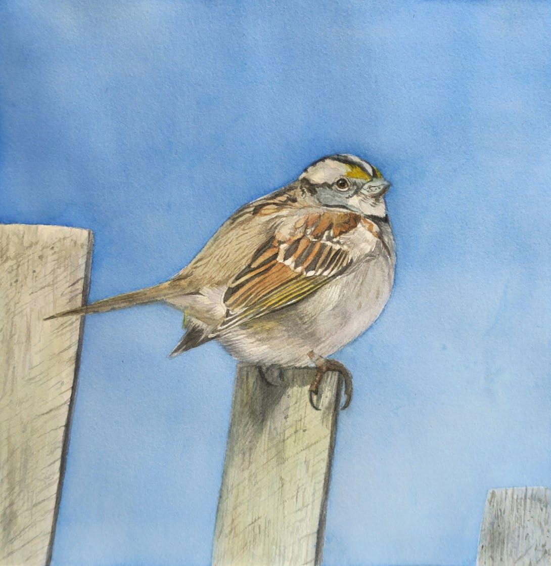 Aki Kano, “White Throated Sparrow” Watercolor on paper 12x12