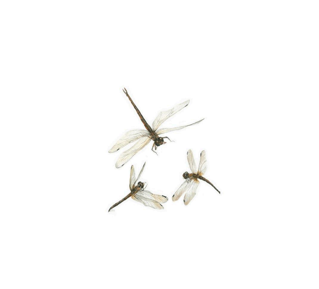 Carol Ashton-Hergenhan “Three Dead Dragonflies” Watercolor on paper, 6.5x6.25 $200
