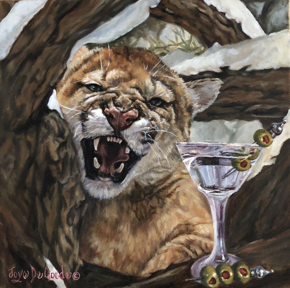 Joye DeGoede, “Cougar Bar Last Call” Oil, 12x12 $2600
