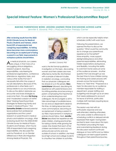 27 Making Parenthood Work: Lessons Learned from Discussions Across AAPM