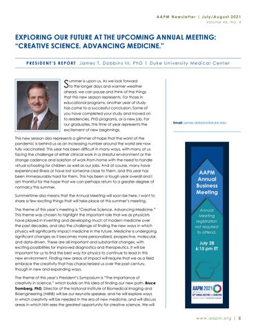 AAPM Newsletter | July/August 2021 Vo l u m e 4 6 , N o . 4