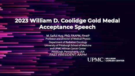 I stand before you tonight with an overwhelming sense of humility and gratitude as I join the ranks of the giants in medical physics who have left an indelible mark on our field. I express my profound gratitude to the members of the Awards and Honors Committee and to AAPM for this humbling recognition. I vividly remember my first AAPM meeting, seeing my idols in the field receiving awards at this very ceremony, and being awestruck by their impact on this field. I aspired to be like them, and it is surreal to be on the other side now nearly three decades later. This award is truly a testament to the tireless efforts and unwavering dedication of the countless individuals who have supported me and guided me on this remarkable journey. You are my family, my friends, my residents, my students, my UPMC, Jefferson and AAPM family. You know who you are; you have been my pillars of strength, my source of inspiration. You have shaped me into the person I am today, and together, we pushed the boundaries of knowledge. Thank you.