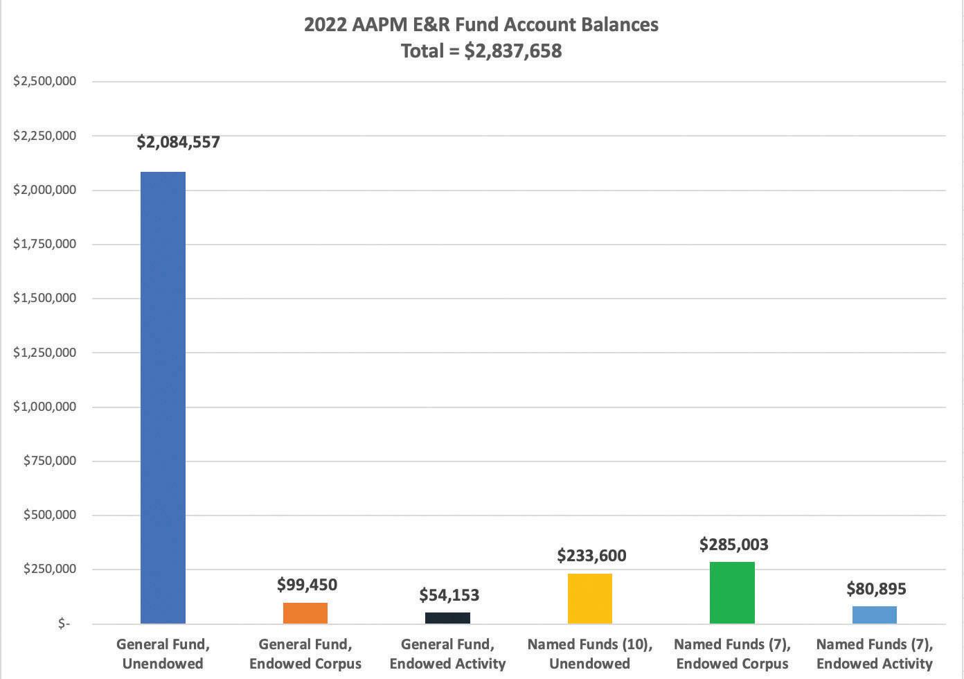 The AAPM Education & Research (E&R) Fund, established in 1990, supports the development of our vital medical physics profession by funding strategic education and research programs and awards. Research support includes seed grants for early-career researchers, a mentorship program, and travel grants. It also recognizes exceptional research through funding best paper awards for our AAPM journals. Education support includes matching grants for clinical residency programs, fellowships for graduate students, and travel and tuition awards. It also funds an innovation in education award and distinguished lectureships. Of great significance, the Fund is used to attract undergraduates to medical physics and to promote diversity by supporting the Summer Undergraduate Fellowship Program (SUFP) and the Diversity Recruitment through Education and Mentoring (DREAM) Program. The Education & Research Fund receives revenues primarily from member donations, donations from our local chapters and related organizations, investment earnings, and the transfer of funds from the AAPM operations budget. As always, AAPM is extremely grateful for these generous gifts. Member donations, which are an essential component and provide the catalyst for other revenue sources, contribute to multiple purposed funds in the E&R Fund’s portfolio of funds, many being named or memorial funds. In 2022, the AAPM E&R Fund supported approximately $523,000 in programs and awards.