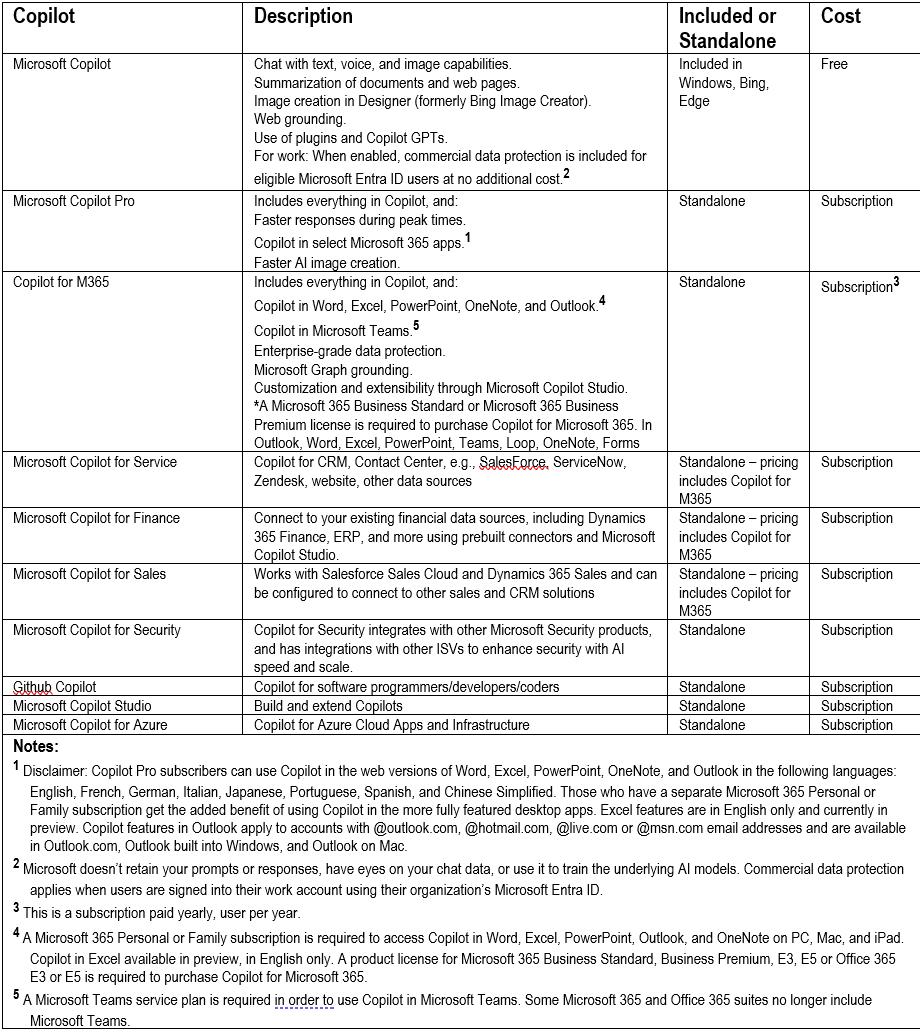 Now this is where any discussion about the growing family of Microsoft Copilots can get downright confusing, hence the following table: