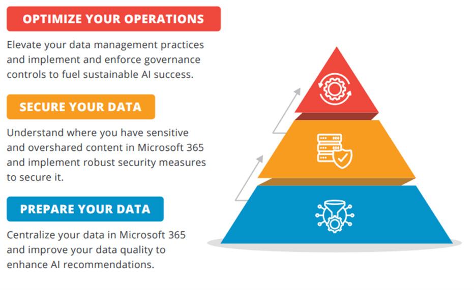 For example, in the case of implementing Copilot for Microsoft 365, a staged approach is recommended by AvePoint Inc, a Microsoft 365 and Software as a Service (SaaS) specialist vendor as summarised by Figure 1: