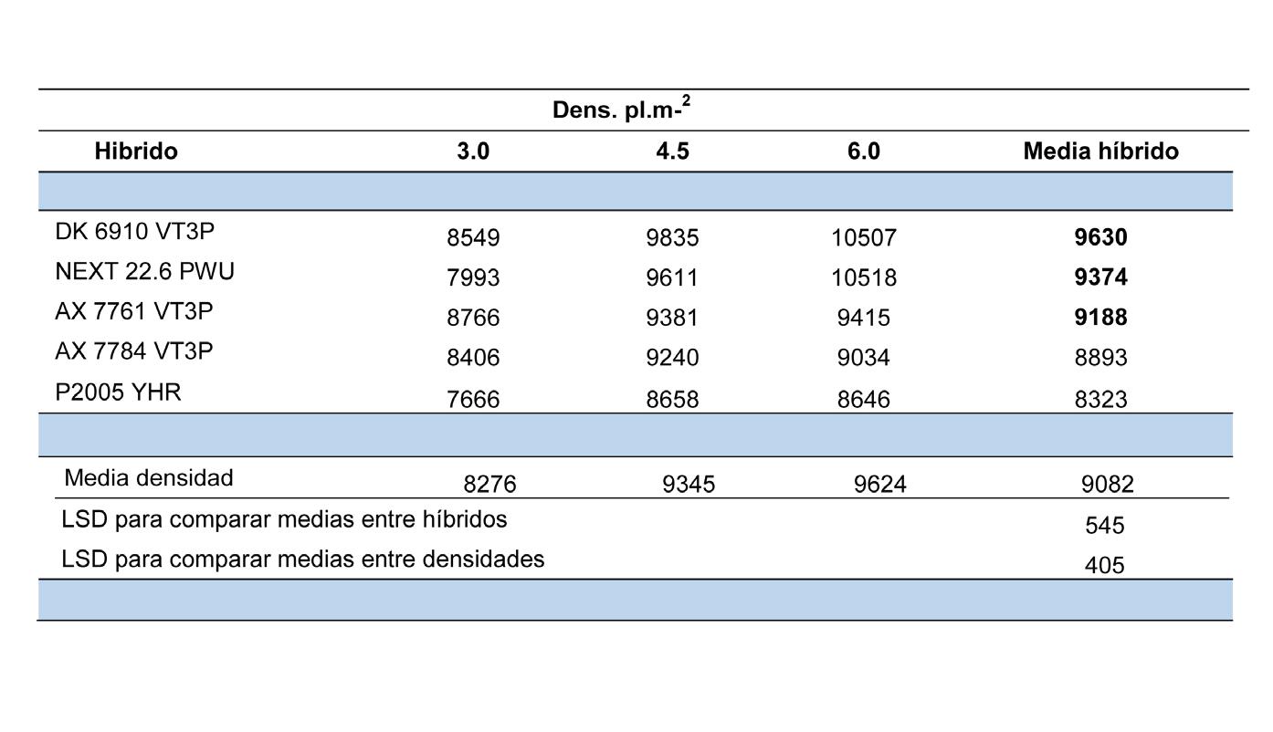 VT3P fue el único que siempre se ubicó en el grupo de máximo rendimiento a través de los ambientes. La interacción híbrido x sitio respondió principalmente a cambios en rankings de híbridos en posiciones intermedias (Tabla 6).