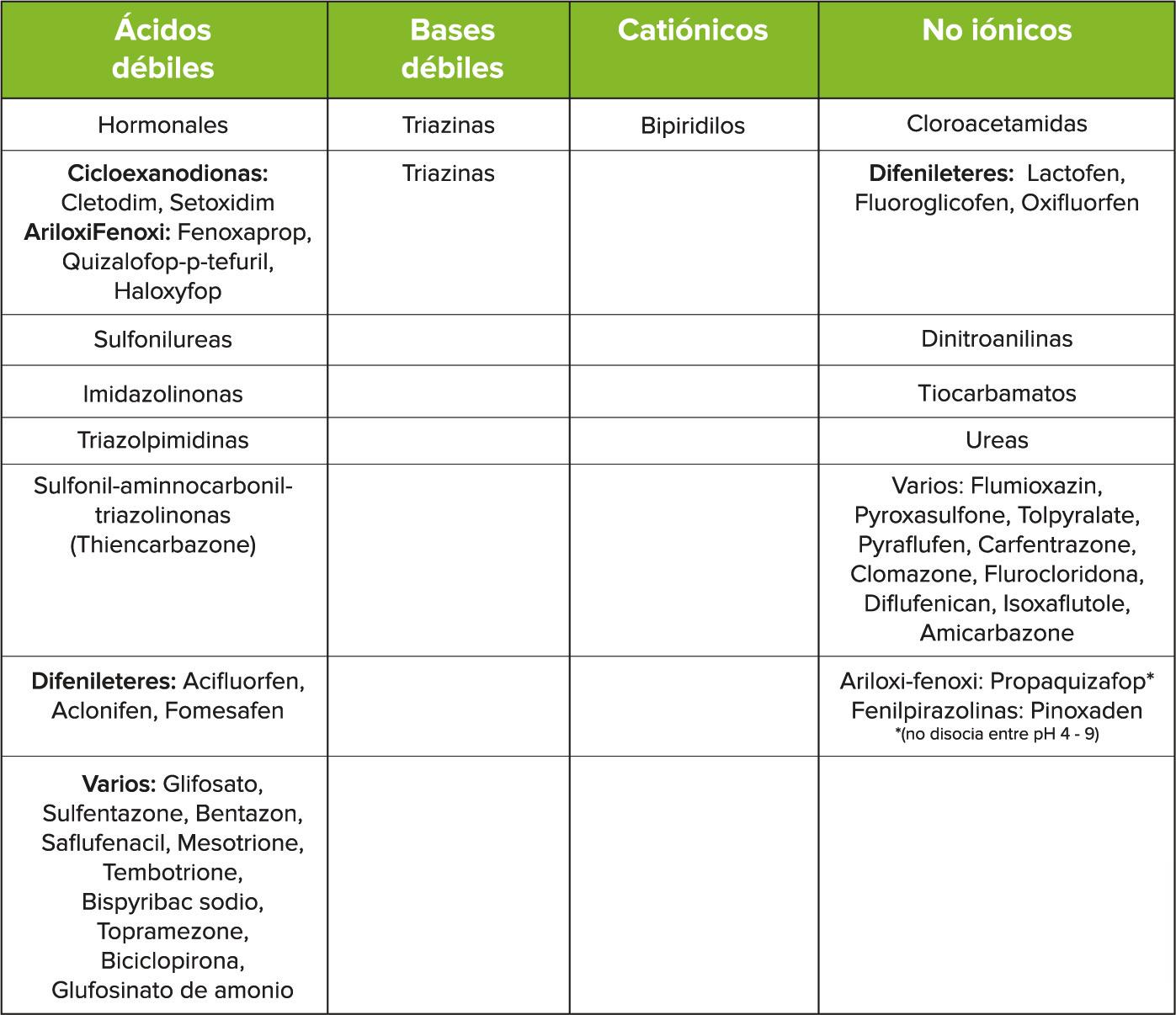 teria orgánica (<2%) y elevado contenido de arena (>60-70%). Por su parte, el pH del suelo posee gran importancia solo en el caso de los herbicidas iónicos, sean ácidos o bases débiles, incrementándose los riesgos cuando se aplican en suelos con pH cercanos o superiores a 7.