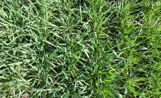 Figura 9. Efectos fitotóxicos por apilamiento o “stacking” herbicida causados por secuencias de aplicación de herbicidas inhibidores de la acetolactato sintetasa en cebada cervecera (cv Andreia). Fotos de ensayos de experimentación de “stacking”. Balcarce, sudeste de Buenos Aires. Período 2014-2015. Las imágenes muestran 6 tratamientos que varían en la cantidad total de herbicidas inhibidores de la ALS aplicados (desde 0 hasta 5 herbicidas) a lo largo de un año experimental en una rotación soja/cebada.