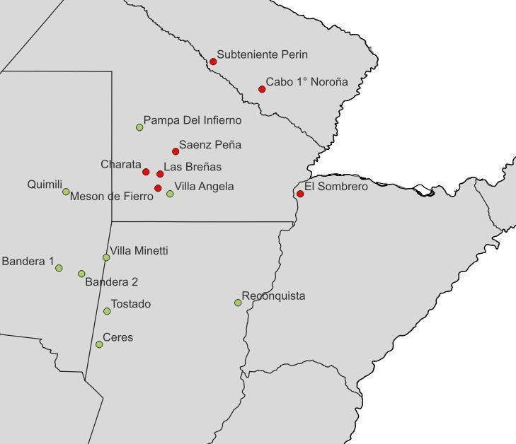 • Subzona Norte compuesta por los sitios Cejolao (CEJ), Pampa del Infierno (PDI) y Villa Ángela (VLA), ubicados en la porción norte de la región.