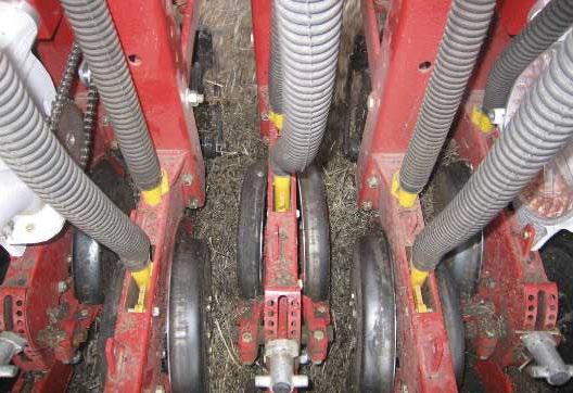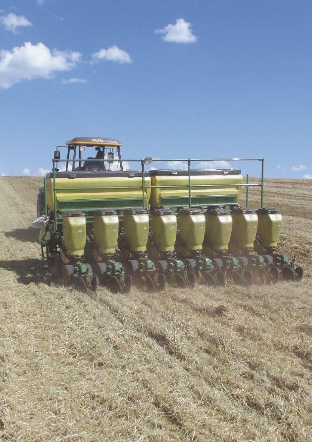 Figura 1.5. La SD sobre residuos del cultivo anterior. Fuera del surco de siembra, el suelo permanece en su estado y estructura natural y cubierto de rastrojos.