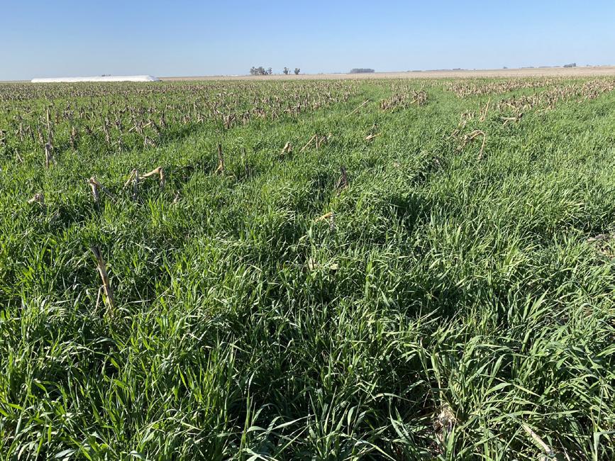 Existe un amplio abanico de verdeos de invierno para elegir. La elección de estas especies y variedades debe responder a la necesidad de diversificar la matriz de rotación para poder sortear momentos de alta variabilidad climática como el actual. Una estrategia podría ser dividir el total de la superficie destinada a verdeos en tercios y sembrar avenas de ciclo más temprano en 1/3 del lote, avenas de ciclo más tardío en otro tercio (o centeno si la perspectiva sigue siendo de sequía) y ryegrass diploides (más rústicos y tolerantes a sequía que los tetraploides) en el otro tercio (Foto 2).