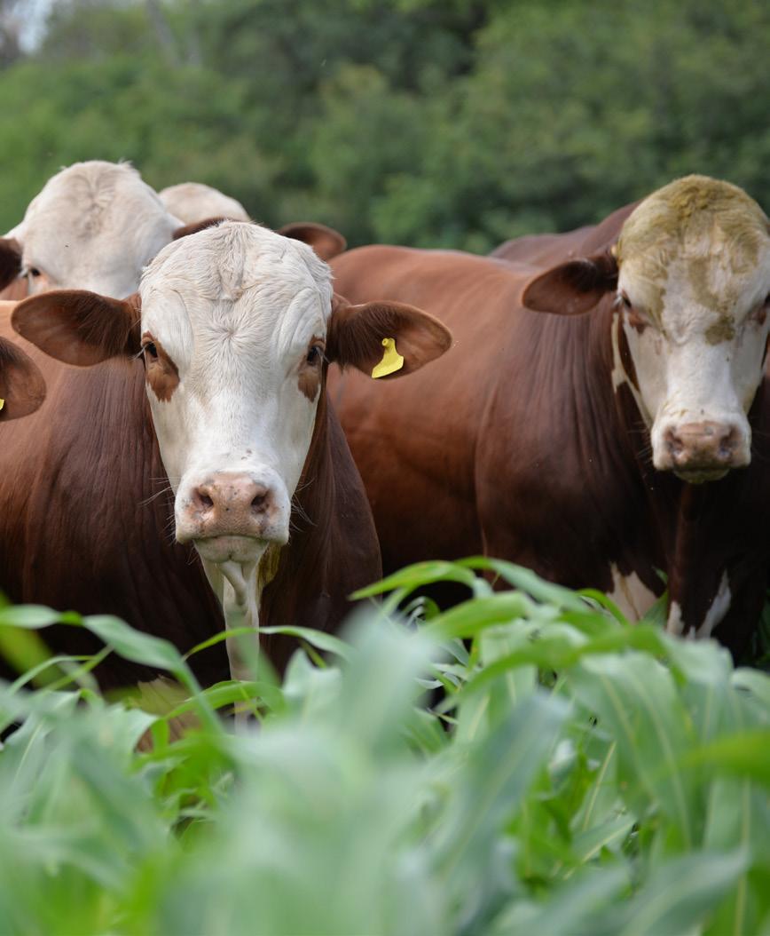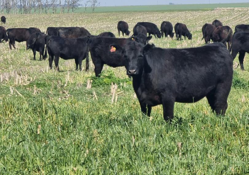 Vaquillonas de servicio sobre cultivos de servicio (avena voleada sobre maíz de segunda, septiembre de 2022). Créditos: Nicolás Bronzovich.