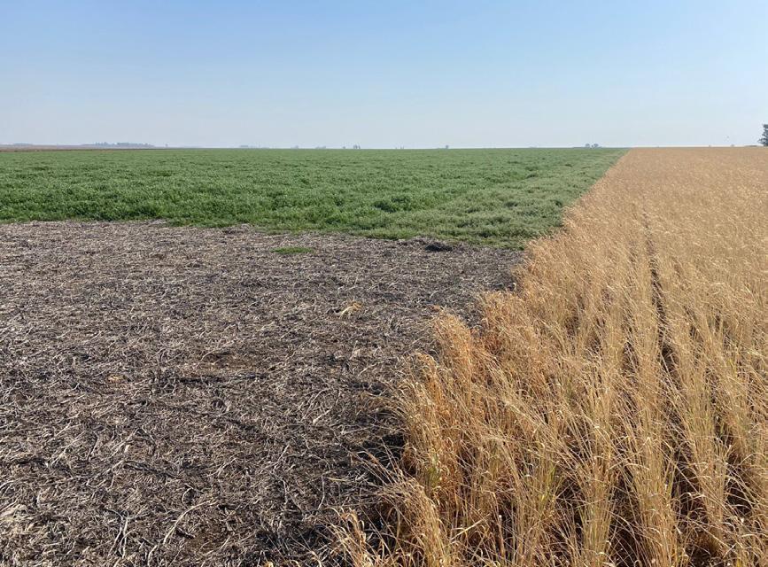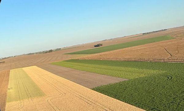 Imagen 4 . A la izquierda, un campo con pasturas perennes (casi sin anegamientos); a la derecha, un campo en barbecho (con anegamientos notorios).