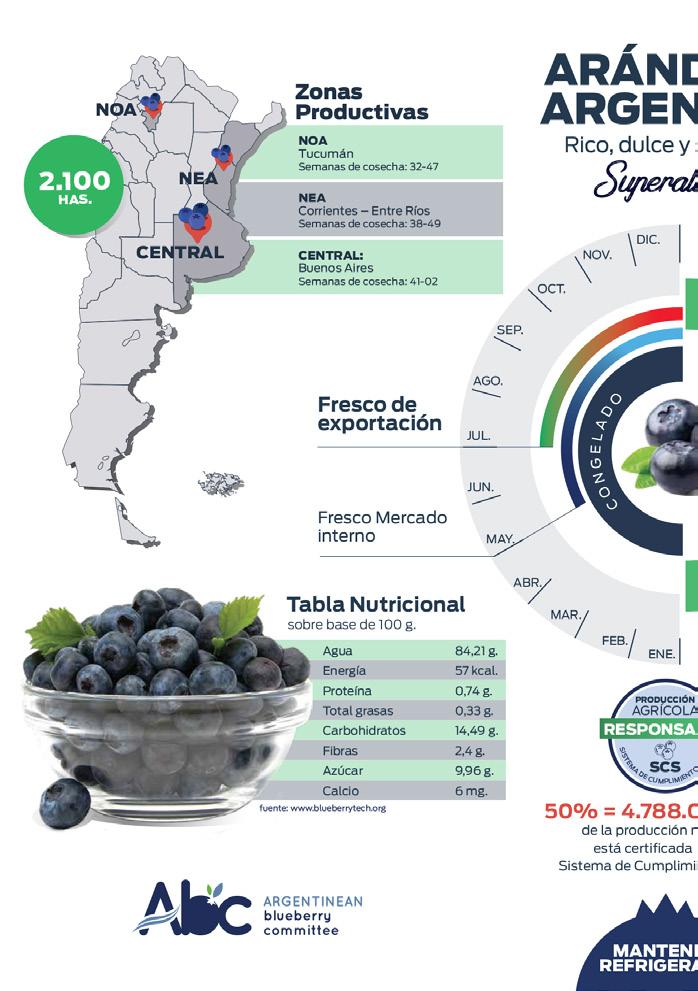 Hoy en día, Argentina exporta más de 6 mil toneladas de arándanos. El desafío del país es seguir afianzándose como productor de primer orden durante la ventana que va de septiembre a diciembre.