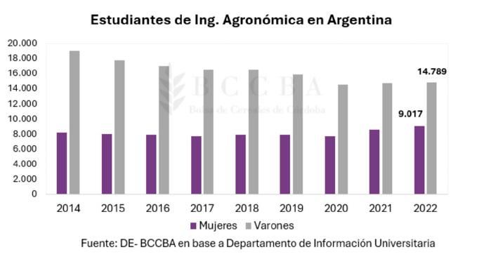 En la actualidad, las mujeres representan el 38% de las inscripciones en la carrera de Ingeniería Agronómica, un 10% más que hace una década, de acuerdo con un informe de la Bolsa de Cereales de Córdoba,. Aún así, su participación