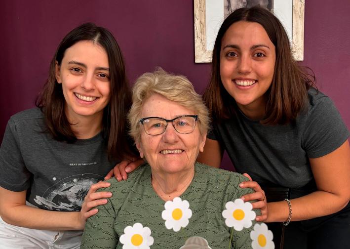 Con su hermana Ángela y la abuela Clelia, autora de la receta de la torta matera.