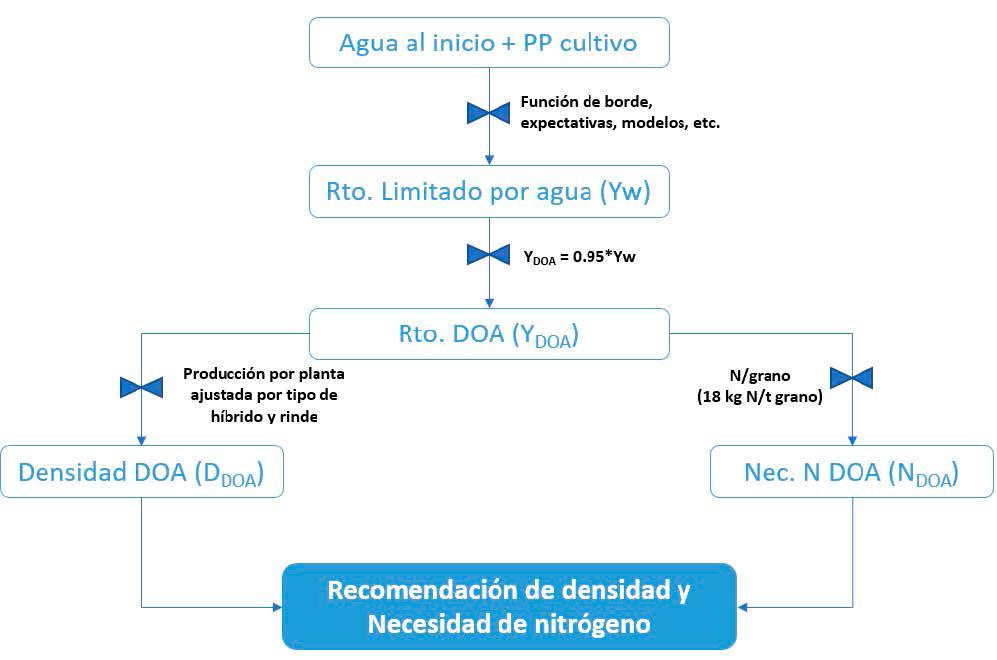 Figura 3: Diagrama de flujo de recomendación de densidad de plantas y necesidad de nitrógeno. Fuente: Videla-Mensegue, et al. (2024).