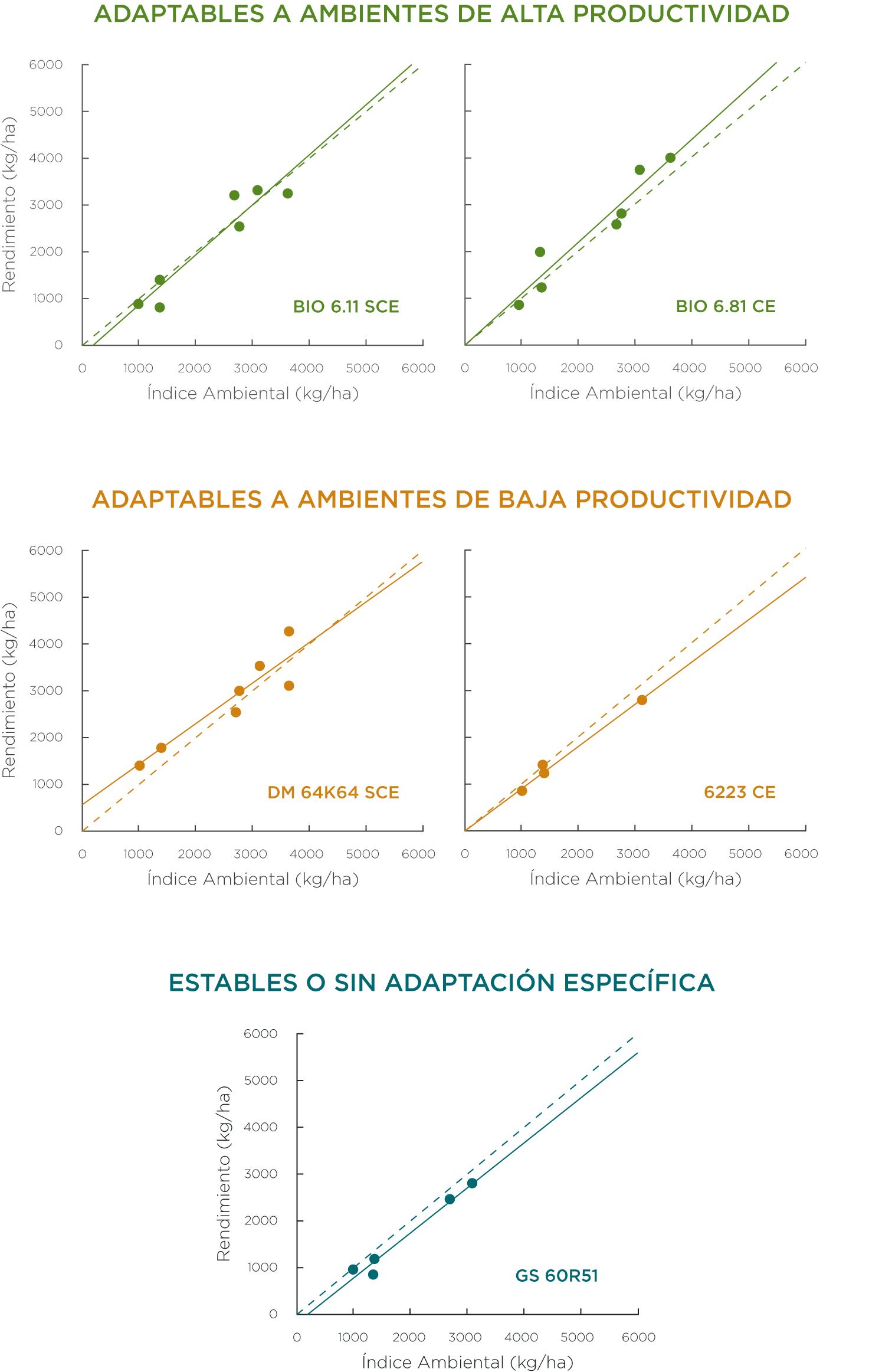 • Comportamiento productivo de variedades de GM V al VIII (potencial de rendimiento y estabilidad);