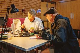 allocate jobs to certain people. Some repairers are “generalists” who can fix most things, but Richard is especially skilled with electrical items, while John has a mechanical mind and has repaired everything from a complicated bridge card counter to an antique gramophone.’