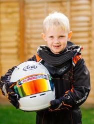 Six-year-old Freddie Dye from Kirdford is making a name for himself in Bambino karting