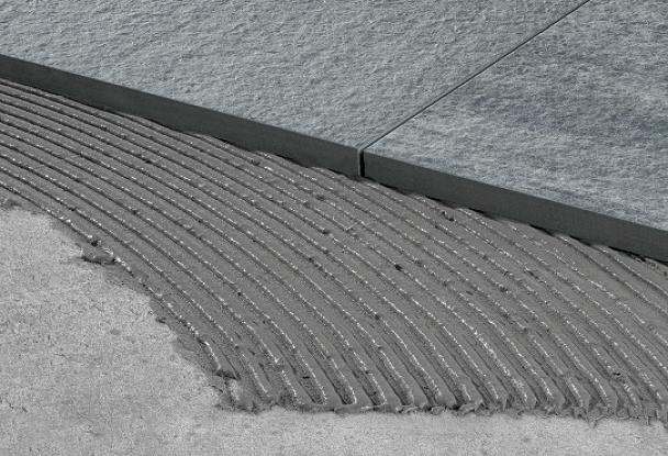 Fliserne kan også klæbes på et støbt betonunderlag med fliselim.