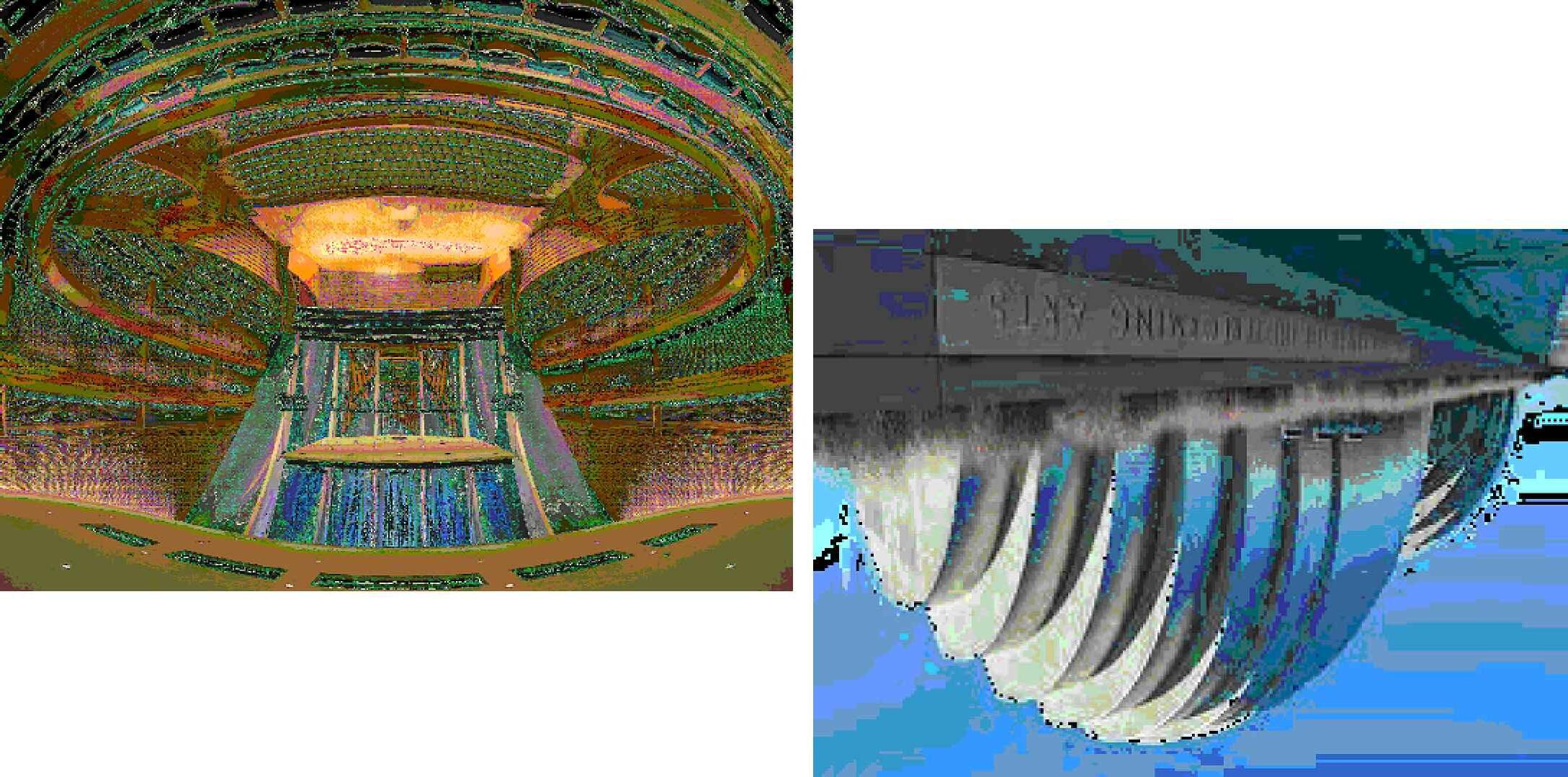 The entrance to the Visionarium’s auditorium is designed as an immersive transition space, setting the stage for an extraordinary spatial experience A massive cascading staircase, sculpted with fluid, organic contours, acts as both a circulation element and a gathering space