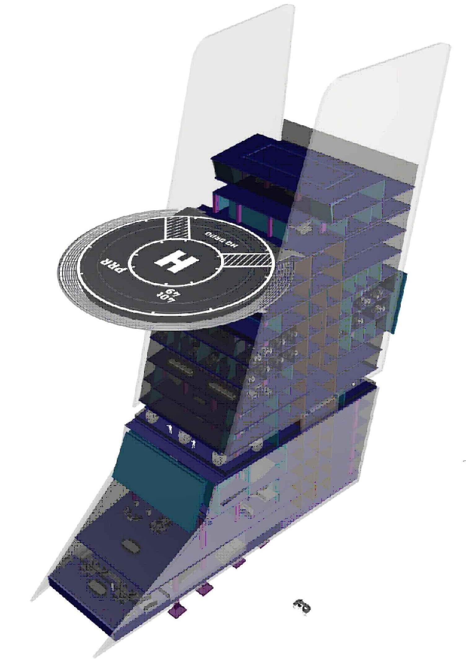 In addition, the helipad’s integration with the rooftop architecture provides seamless connectivity to the helipad control room
