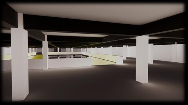 The underground parking area is strategically located at the basement level of the building, serving as a functional zone that seamlessly integrates with the overall structure Planned vehicular circulation bays supported by regularly spaced columns, ensuring efficient movement and parking of vehicles