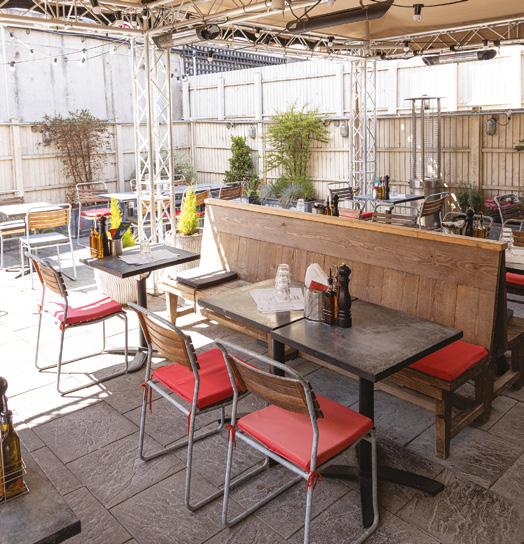 The Boar’s Head in High Street has a new-look outside dining space inside its walled garden as well as plush seating, parasols and impressive floral displays with St Michael’s Church as the backdrop.