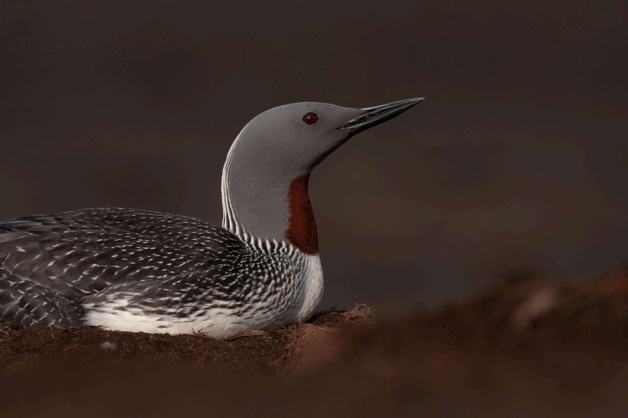 The Red-throated Diver, as the Red-throated Loon, is the smallest and most delicate of the loons. This individual was incubating on a low mound of peat just inches above the waterline, perfectly camouflaged against the tundra. Her crimson throat patch gaver her away in an otherwise muted landscape. We kept our distance and worked slowly, at a sloth pace, allowing her to remain undisturbed while we capturing the intricate detail of her breeding plumage with 600mm lenses.