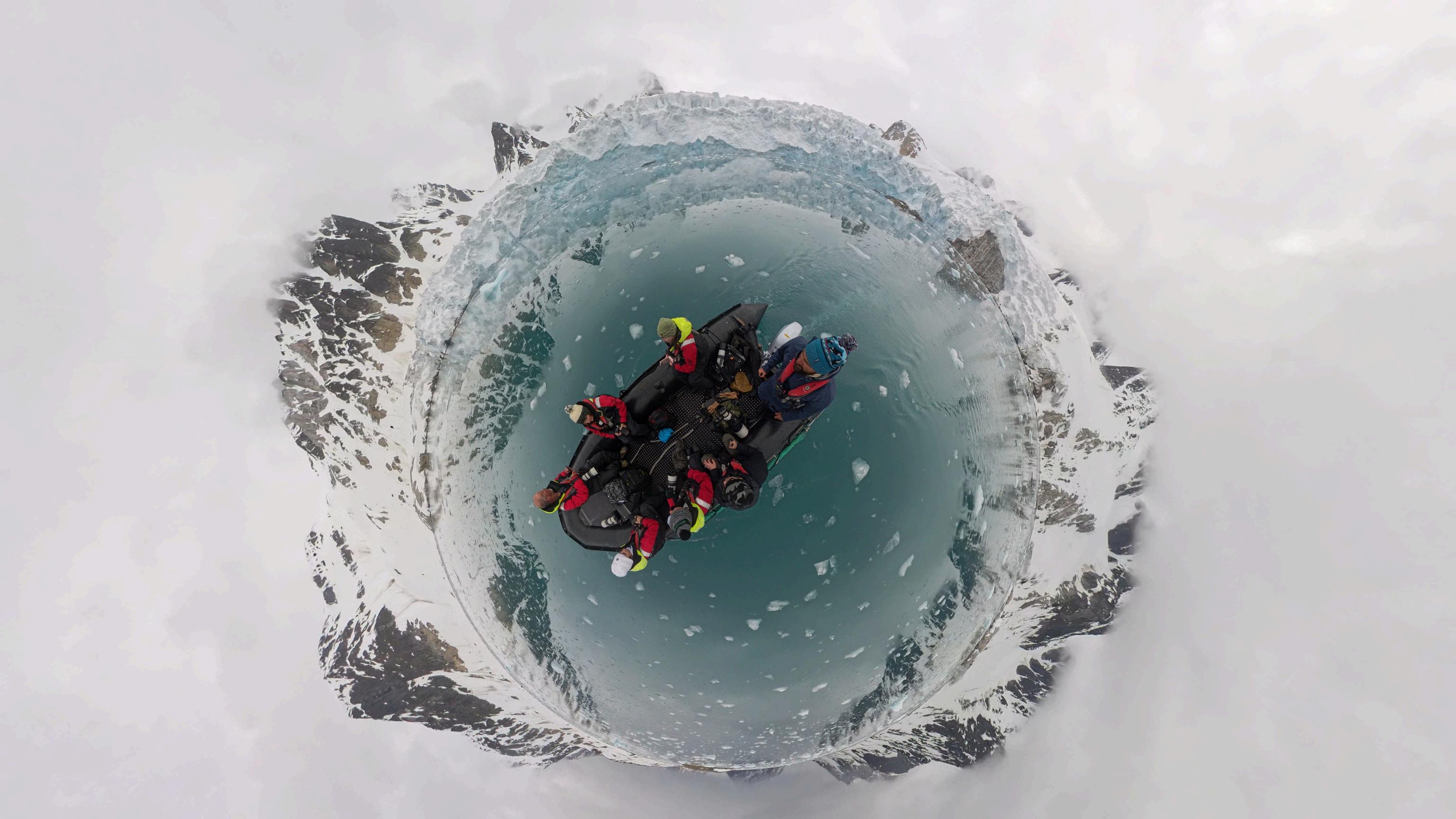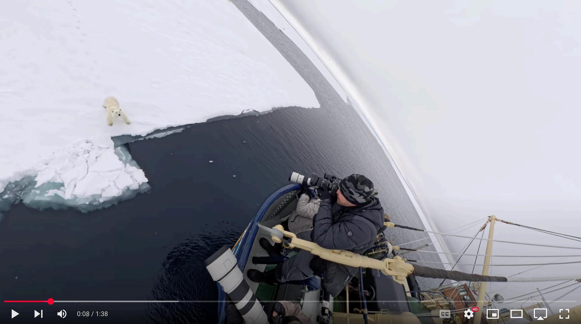 Another way to achieve an eye-level view with wildlife is by using a camera trap or lowering a camera on a pole over the side of the ship. Since the first option wasn’t possible, I lowered my Insta360 in hopes of getting lucky. Sure enough, a polar bear came right up to investigate, sniffing the front element of the lens. The shift in perspective was dramatic, turning a familiar subject into something entirely fresh! It’s not the gear that makes the photographer, but the right tool can spark creative ideas, and this turned out to be one of my favorite pieces of content from the entire trip.